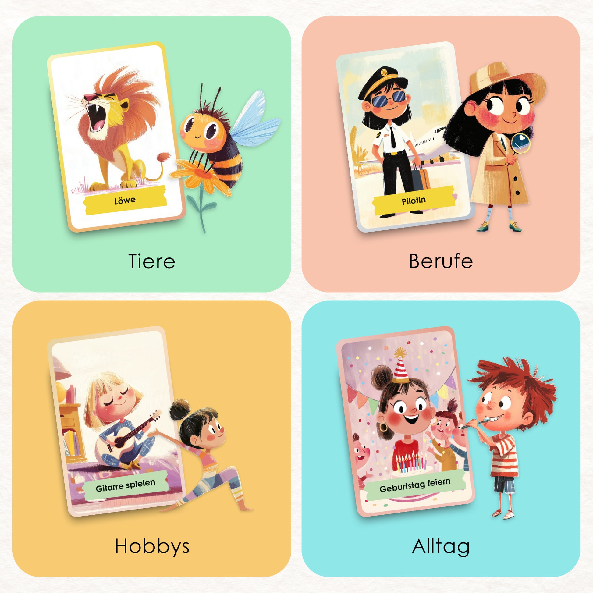 Die Karten sind auf hochwertigem, langlebigem, dickem Papier gedruckt und mit abgerundeten Ecken für sicheres und einfaches Handling – ideal für kleine Hände!
